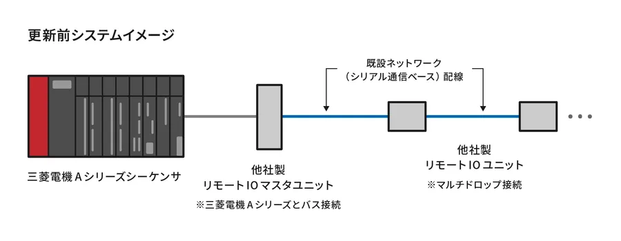 盤内のシーケンサをAシリーズからQシリーズへの更新するにあたって、直接接続している他社製リモートIOマスタユニットが、更新先のQシリーズに対応せず後継機種もなかったため、新たなネットワークの構築まで実施しました。