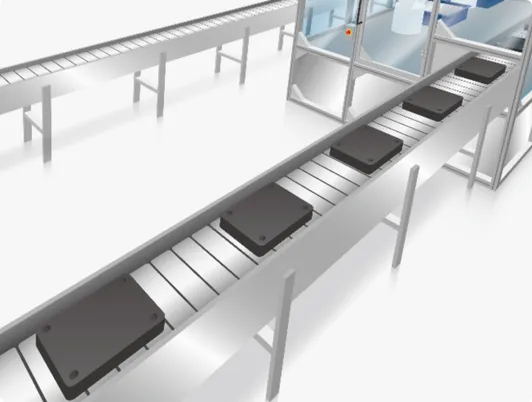 輸送機器製造にてドカ停が多発していたため、ご相談をいただきました。チェーン駆動用のモーターにインバータを追加し、速度を緩めてサイクルを最適化することで、衝撃を軽減しドカ停防止を図りました。